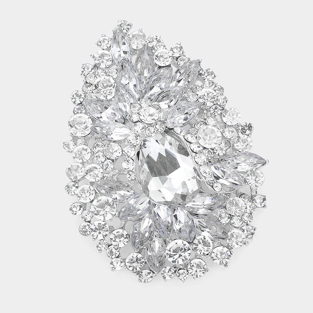 Crystal Rhinestone Teardrop Bouquet Pin Brooch