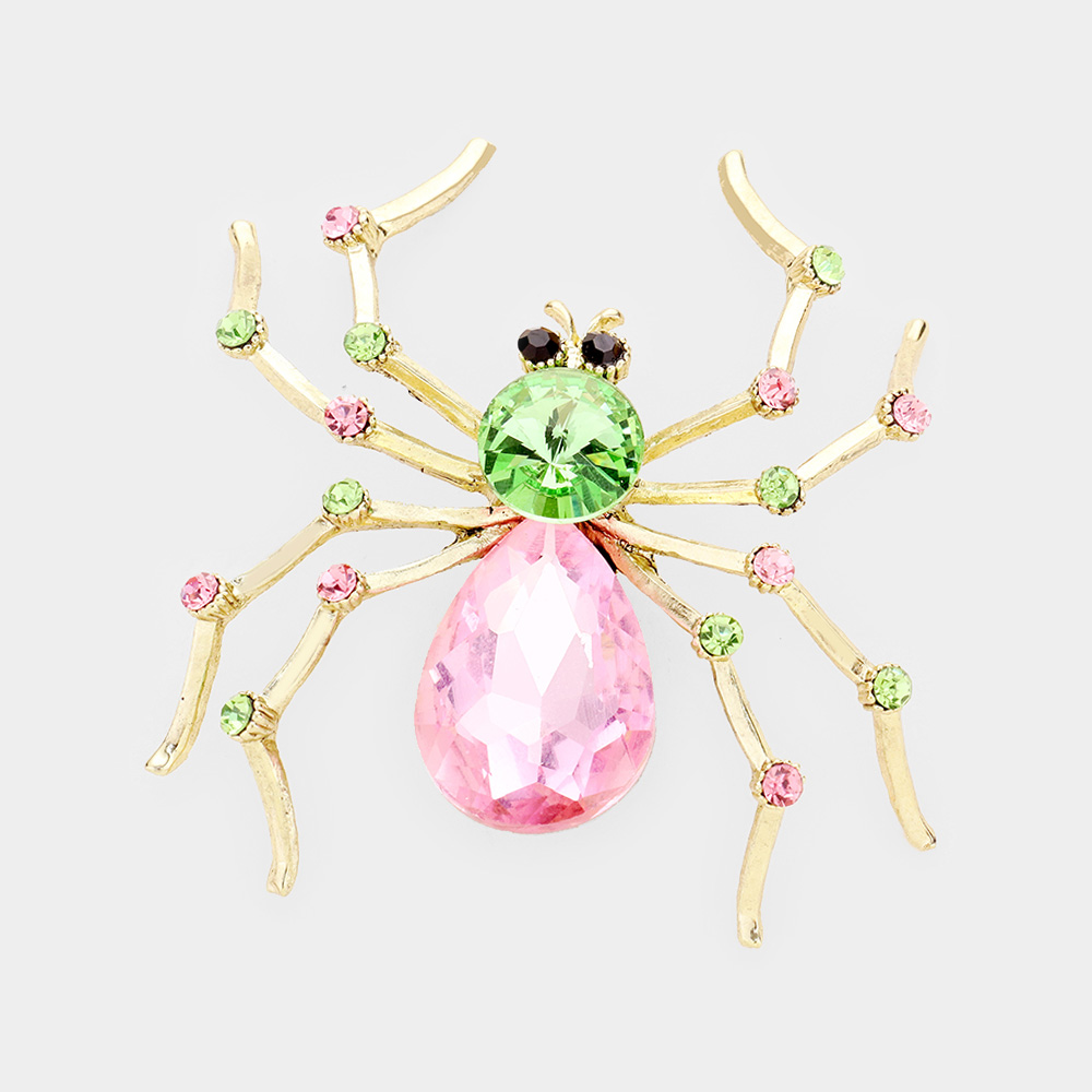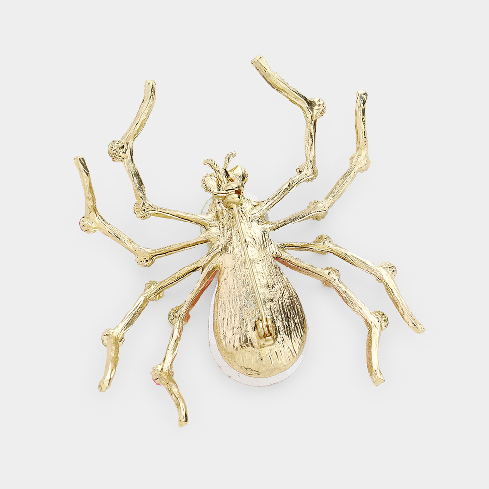 Stone Embellished Spider Pin Brooch