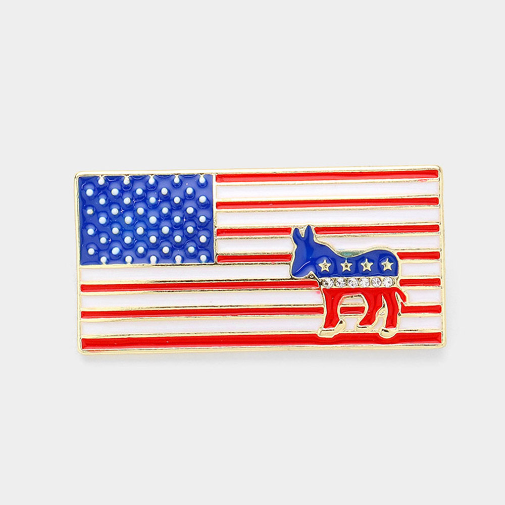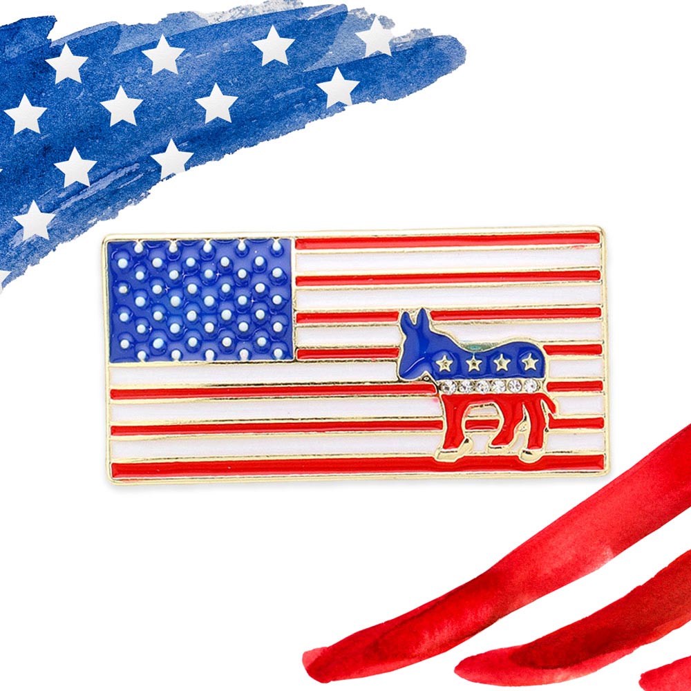 Enamel American USA Flag Democrats Donkey Pin Brooch
