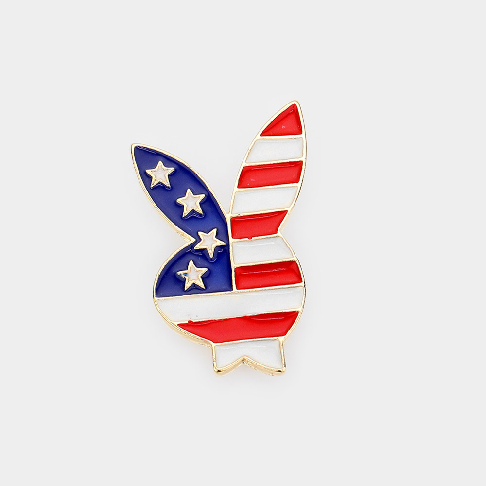 Enamel American USA Flag Playboy Bunny Pin Brooch