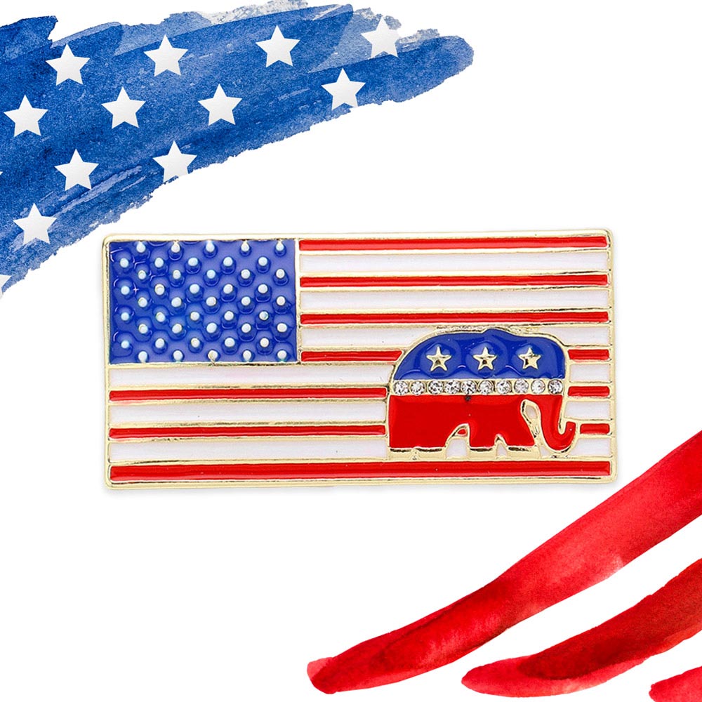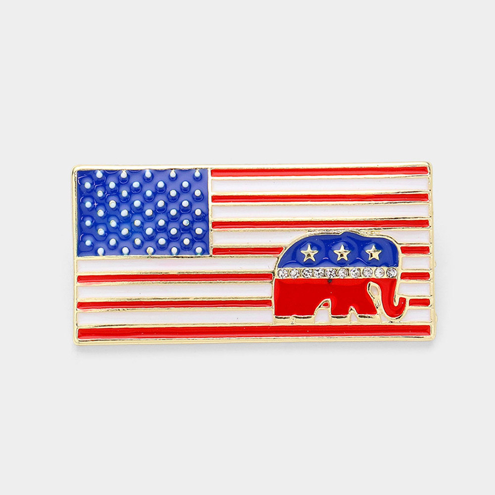 Enamel American USA Flag Republican Elephant Pin Brooch