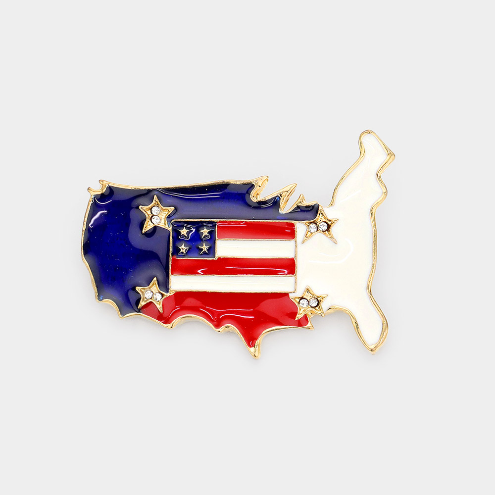 Glittered American USA Flag Triple Marquise Layered Dangle Earrings