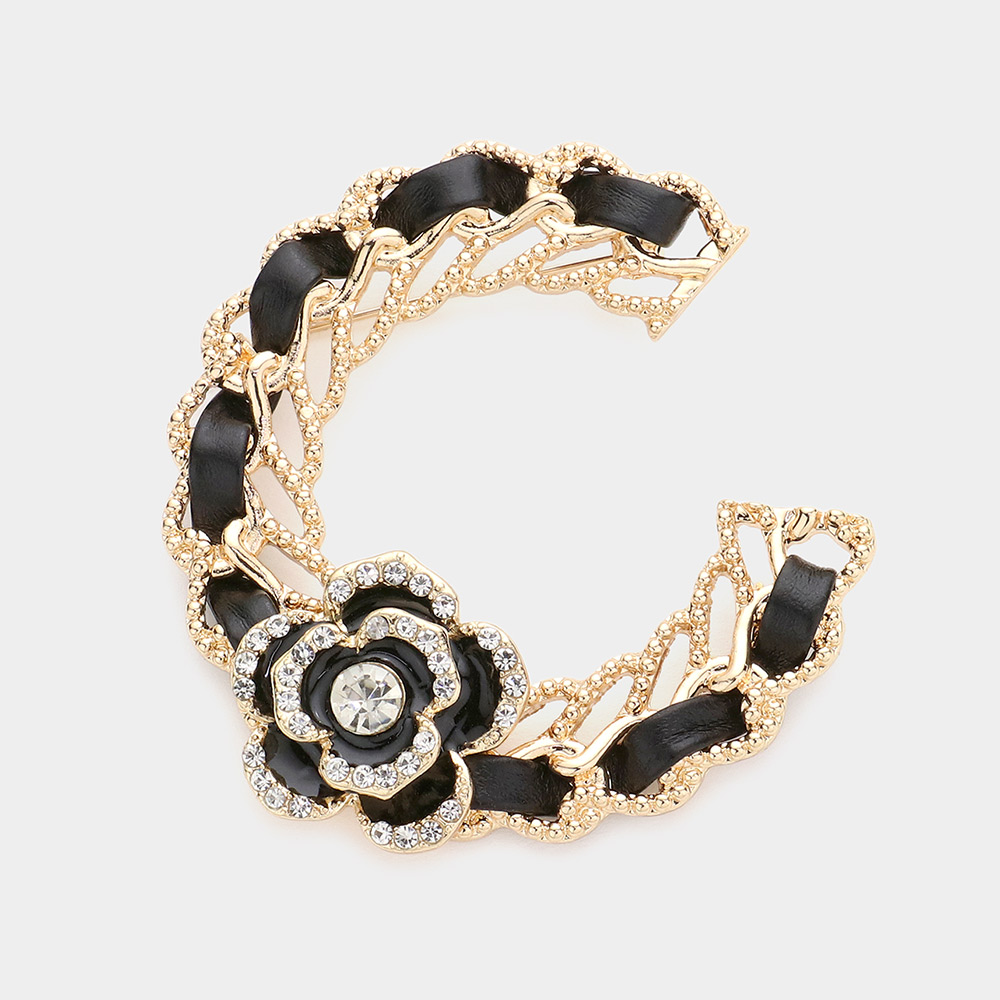 Bow Rose Pointed Faux Leather Chain Link Keychain / Bag Charm