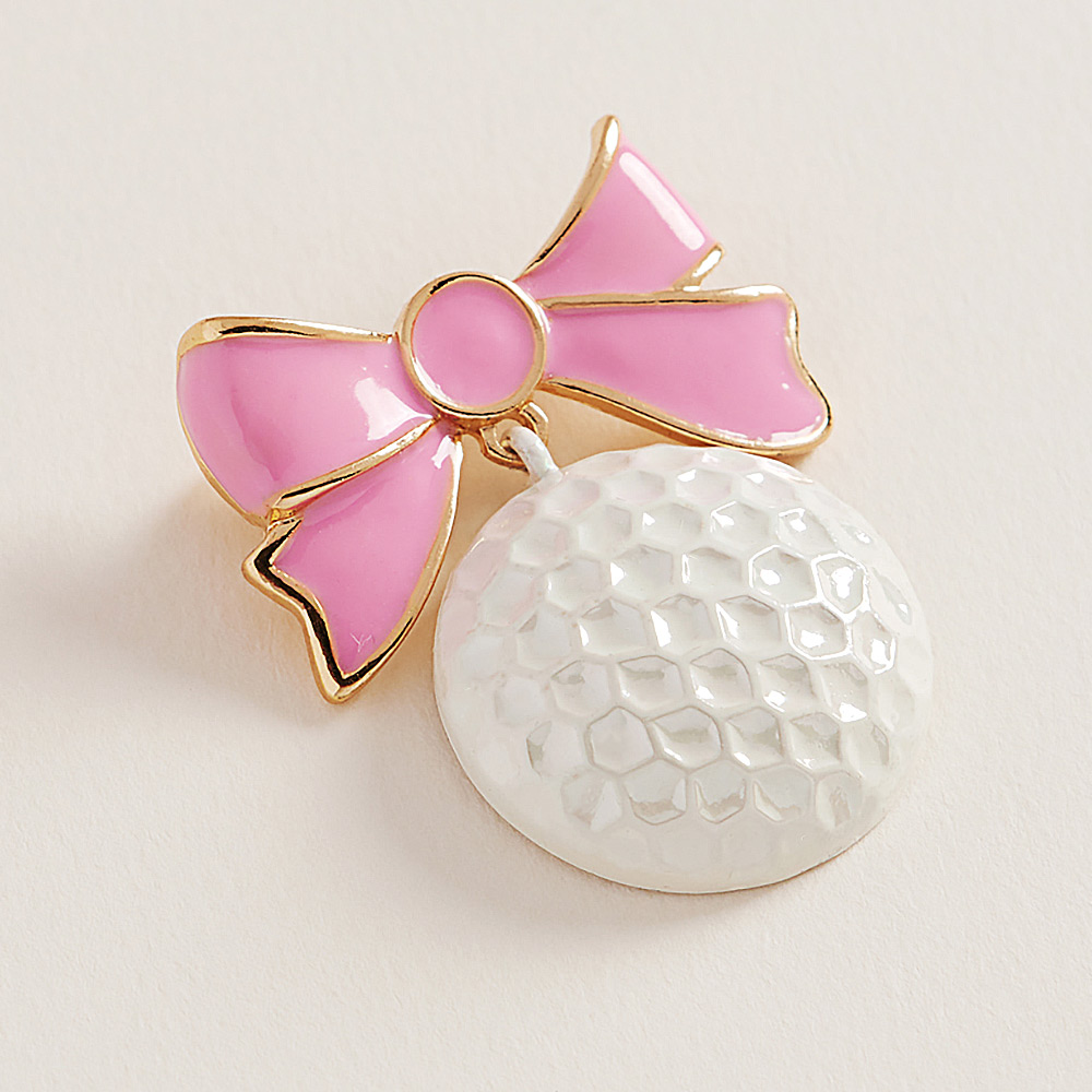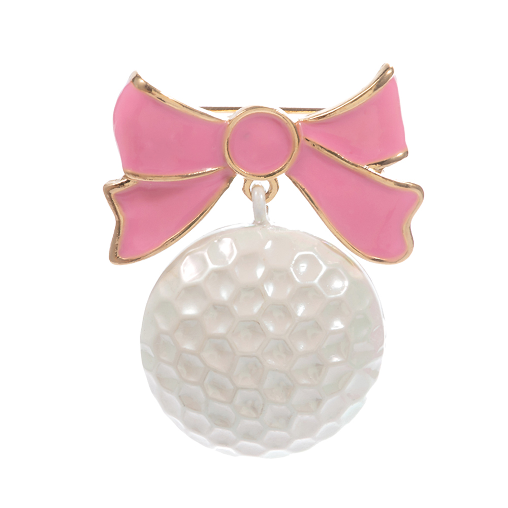 • Charming brooch featuring a pink bow and dangling golf ball. A stylish and playful accessory for golf lovers, perfect for bags, hats, or lapels.