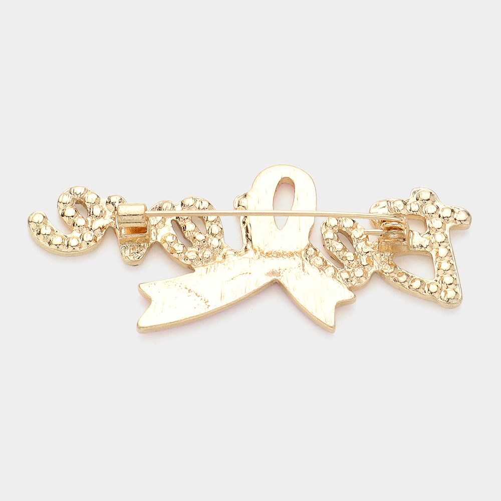 Enamel Pink Ribbon Pointed Stone Paved Believe Message Pin Brooch