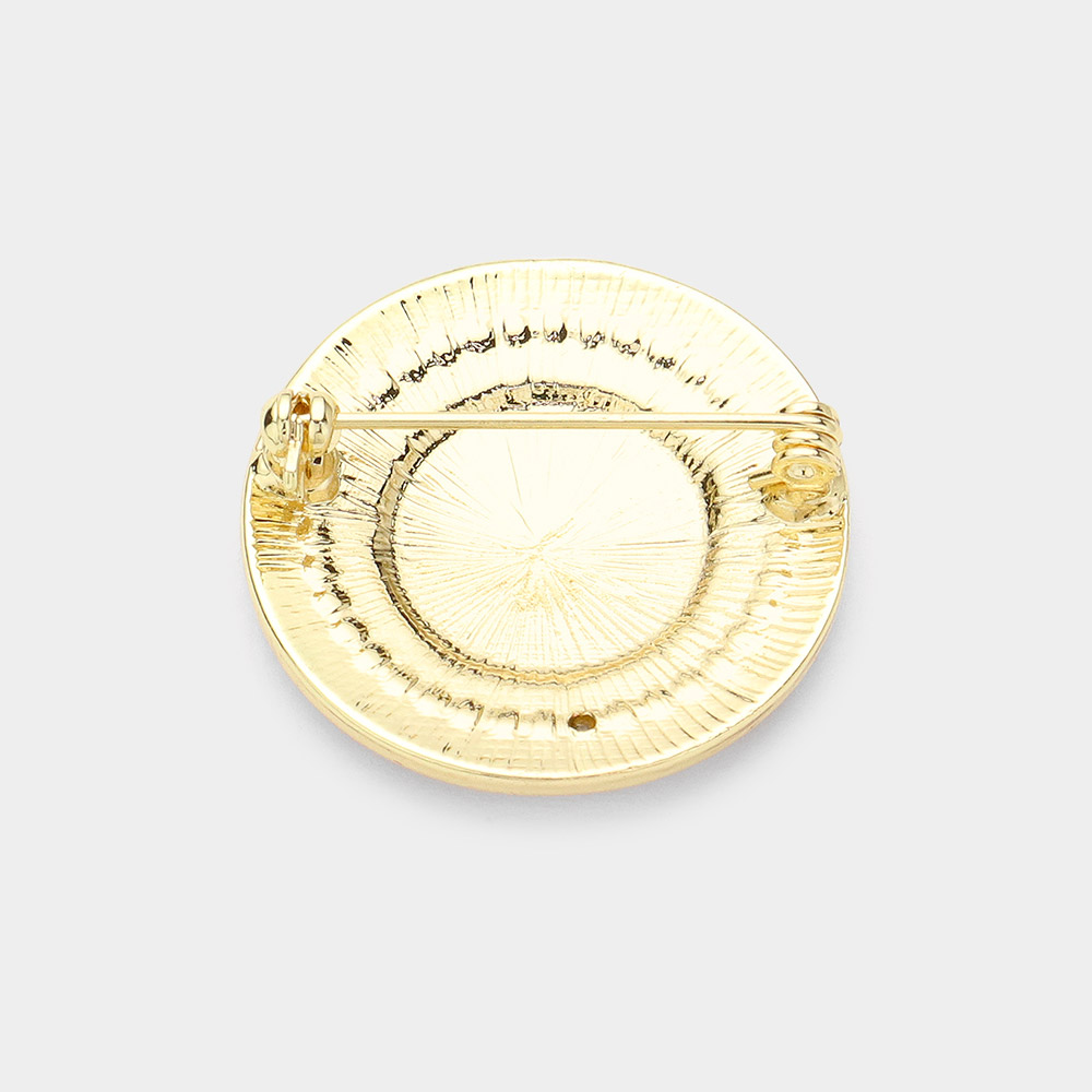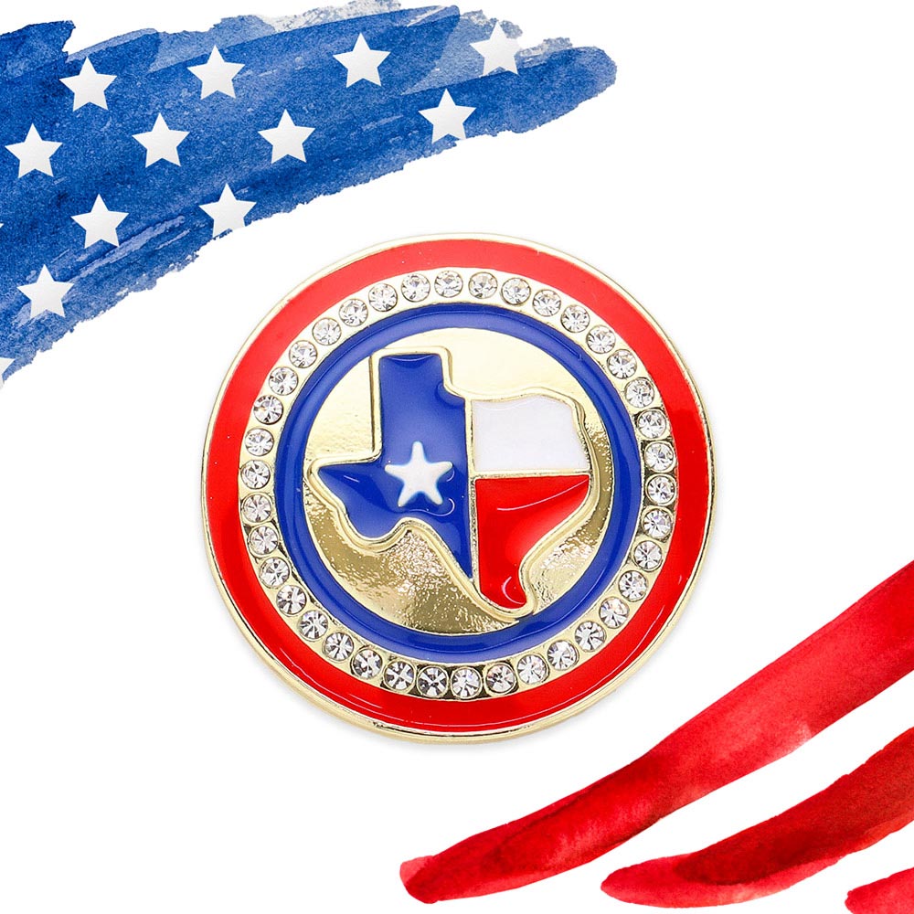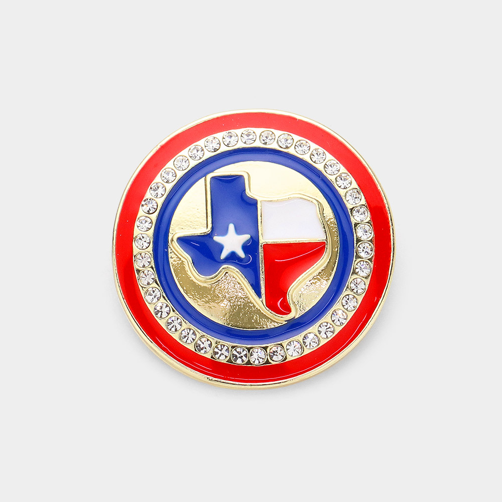 Enamel Stone Paved Texas Map Round Pin Brooch