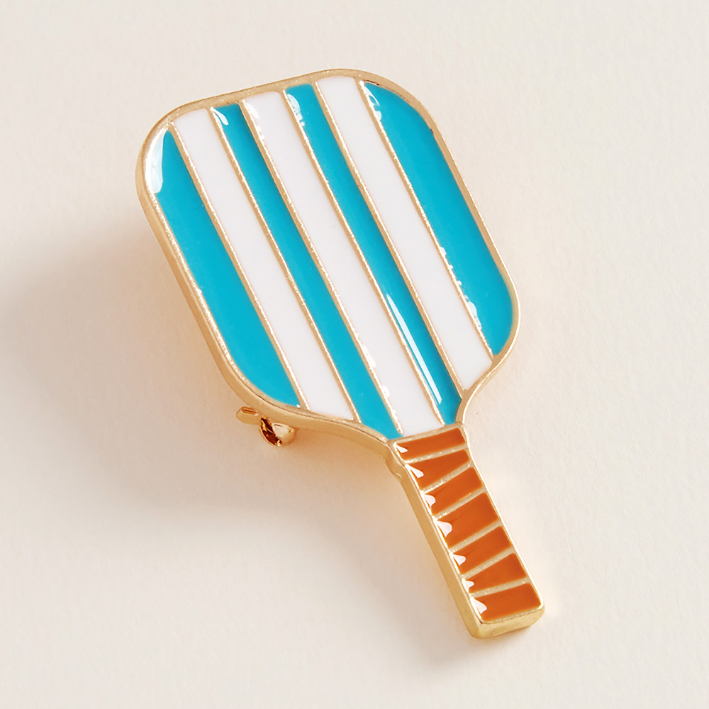 Enamel Striped Pickleball Paddle Pin Brooch
