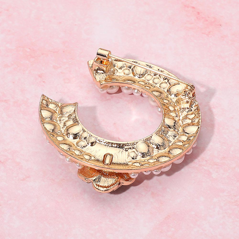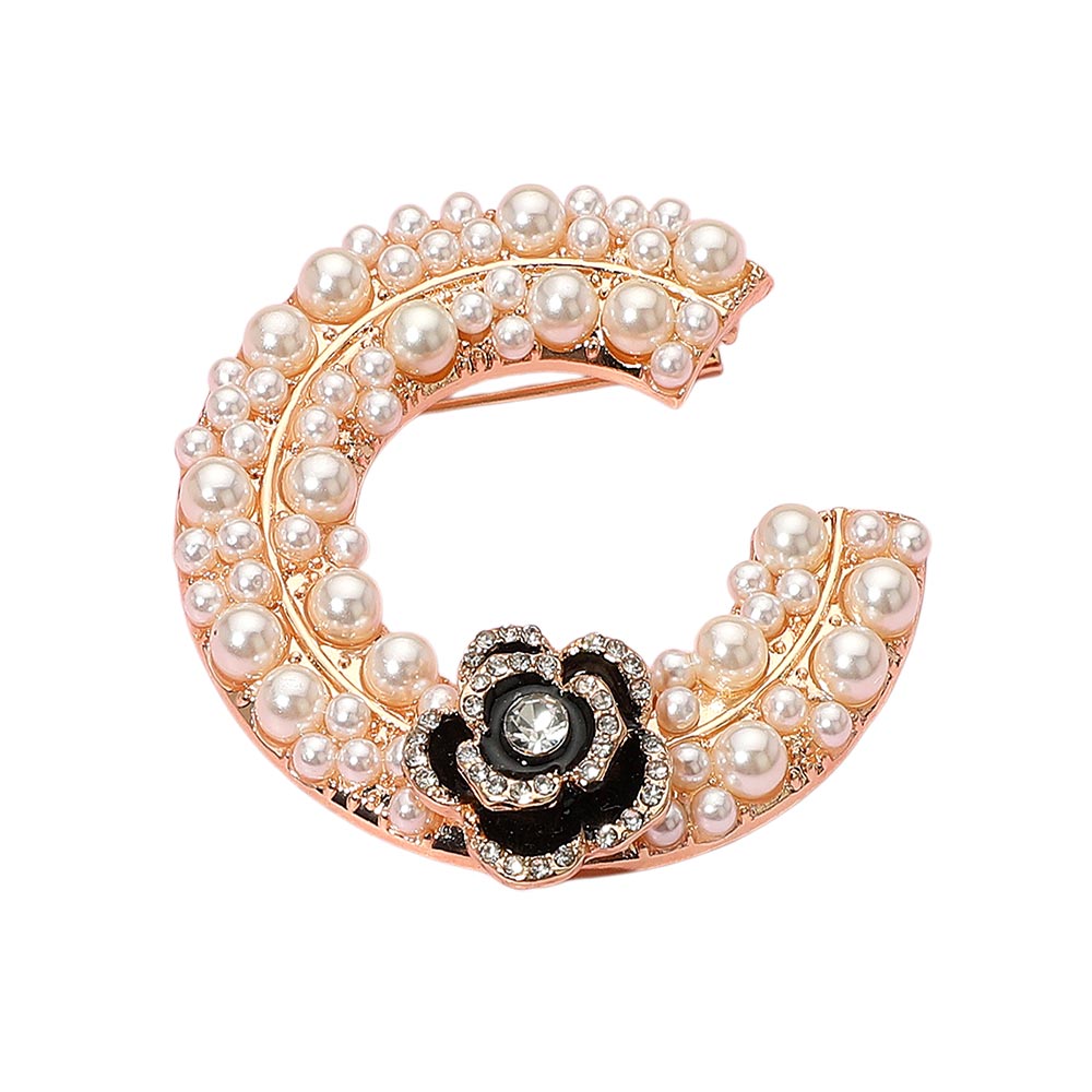 Details • Size : 1.8" X 2" • Pin Brooch • This elegant C-shaped brooch is adorned with lustrous pearl-like accents and finished with a sparkling flower detail for a refined, feminine touch. Ideal for adding vintage-inspired charm to jackets, scarves, or bags, it blends classic elegance with modern sophistication. • Lead and Nickel Compliant