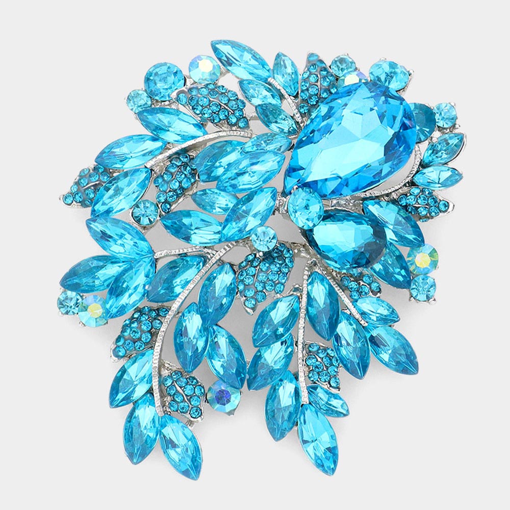 Teardrop Stone Cluster Accent Rhinestone Paved Floral Embellished Collar Statement Evening Necklace