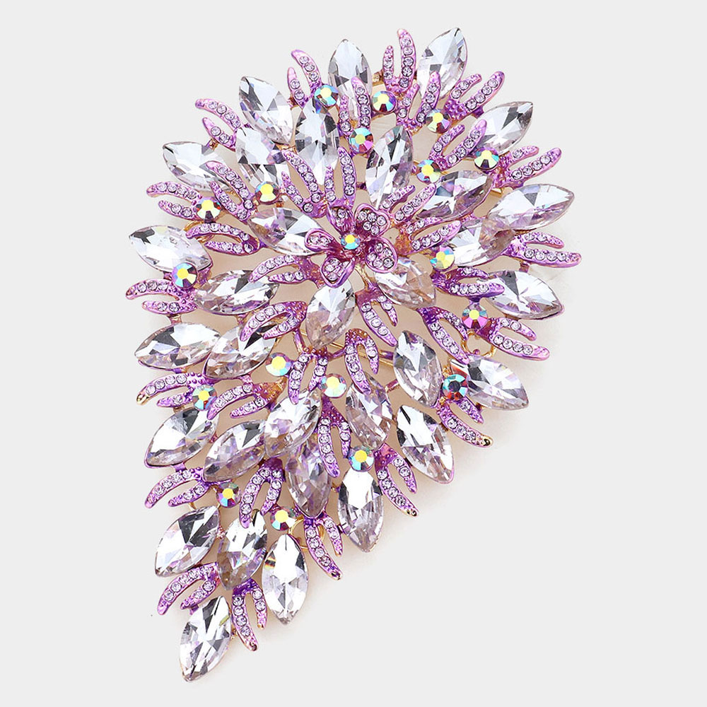 Flower Centered Marquise Stone Cluster Vine Pin Brooch