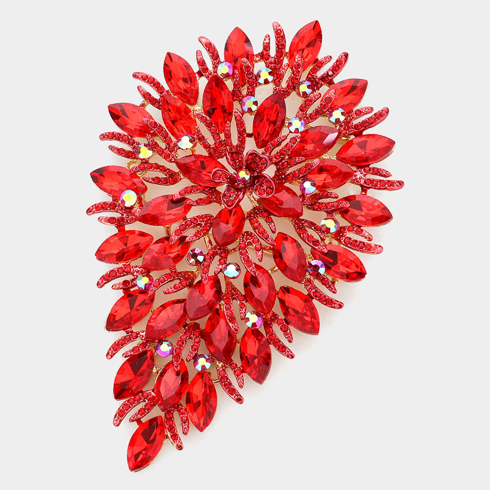 Flower Centered Marquise Stone Cluster Vine Pin Brooch