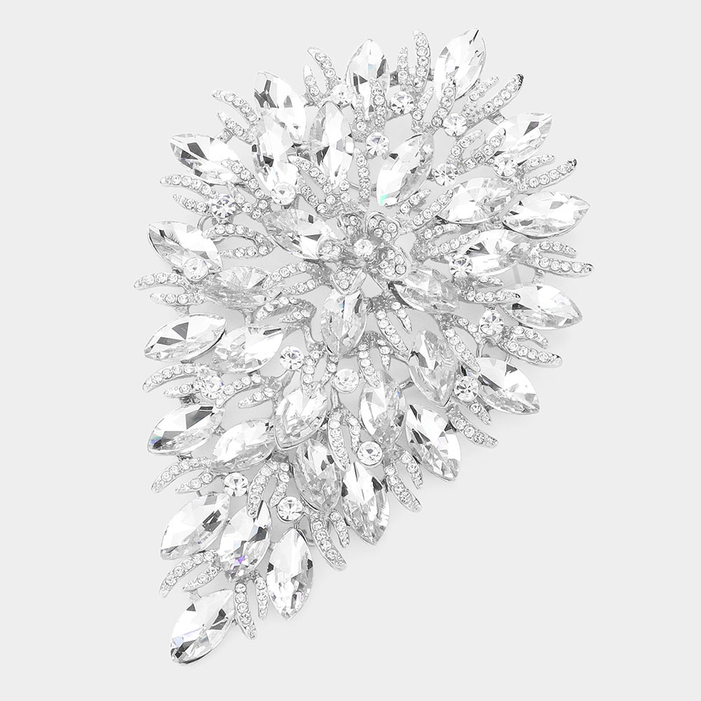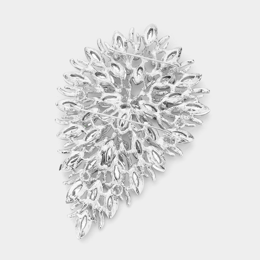 Flower Centered Marquise Stone Cluster Vine Pin Brooch
