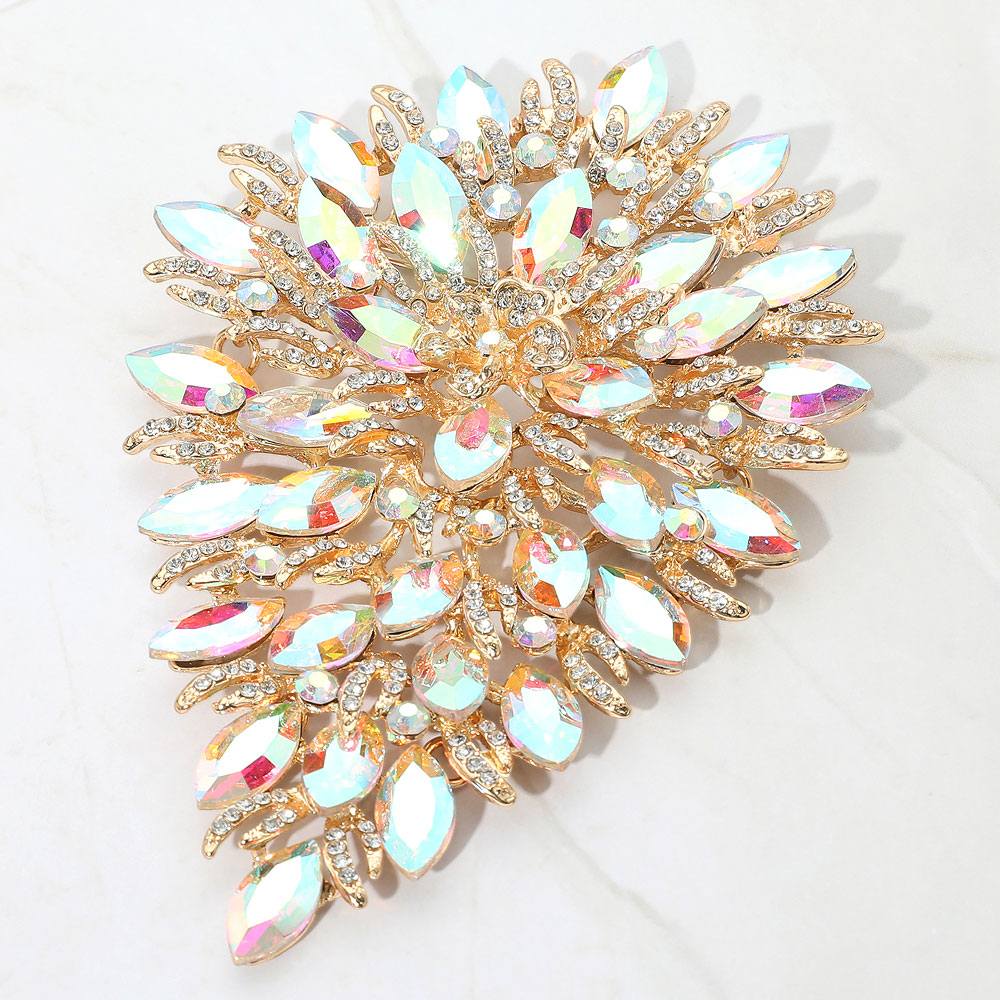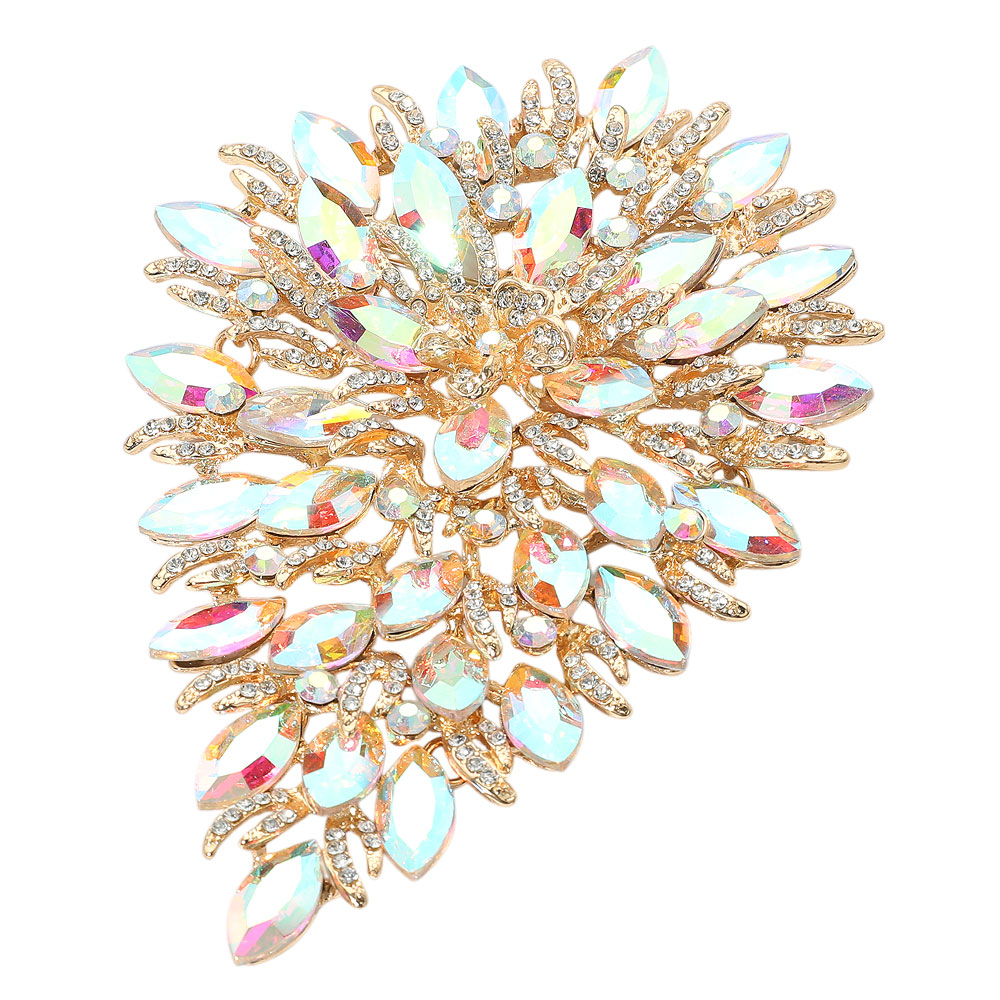 Flower Centered Marquise Stone Cluster Vine Pin Brooch