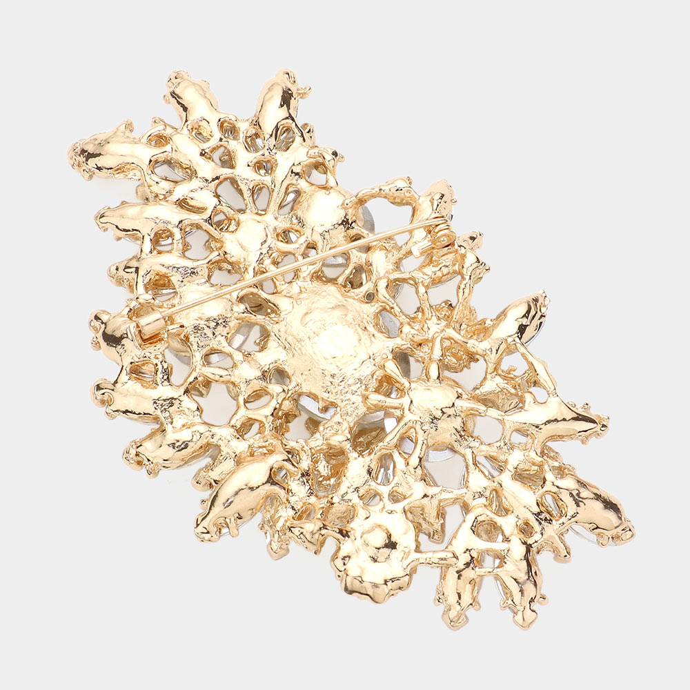 14K Gold Dipped CZ Stone Accent Dual Flower Hoop Earrings