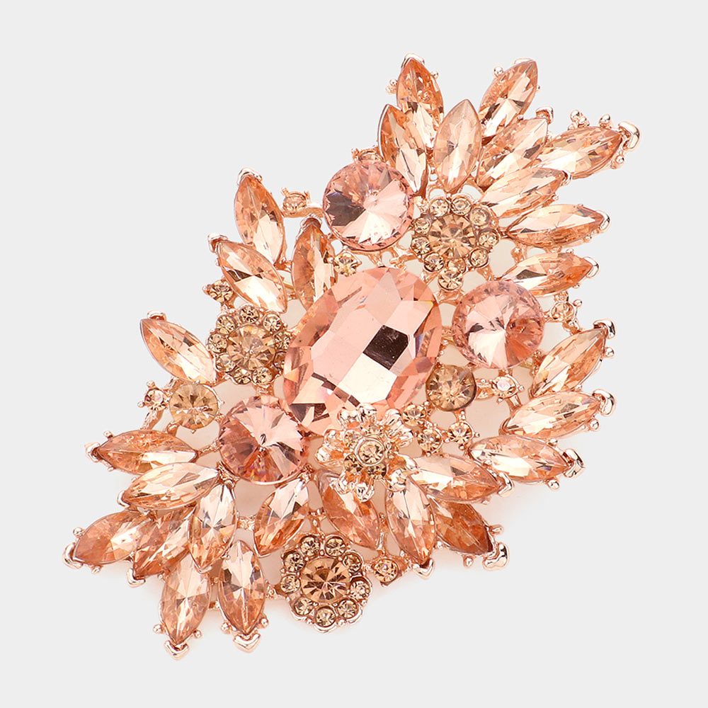Rhinestone Paved Flower Leaf Pointed Hair Comb