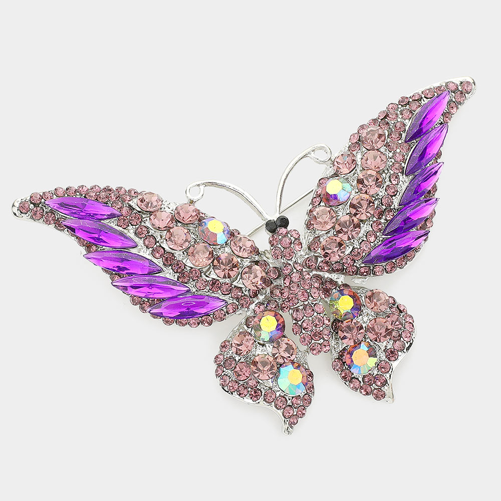 Marquise Stone Accent Antique Metal Butterfly Pendant Necklace