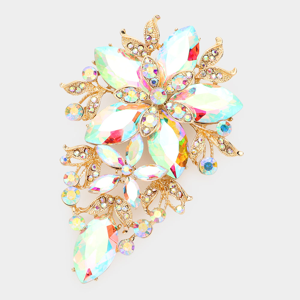 Glass Crystal Flower Cluster Bouquet Pin Brooch