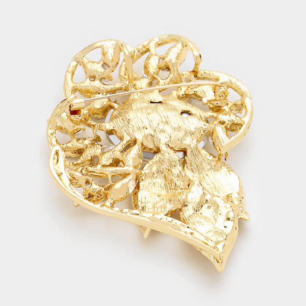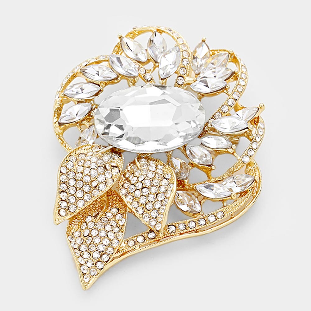 Stone Paved Flower Pin Brooch / Alligator Snap Hair Clip