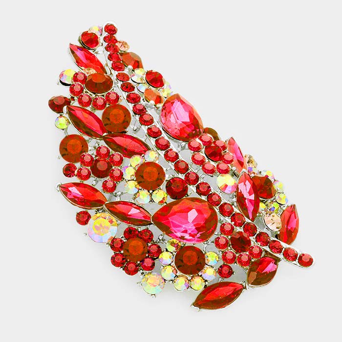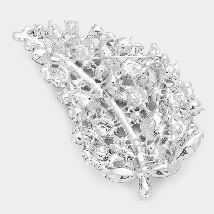 Glass Crystal Leaf Pin Brooch
