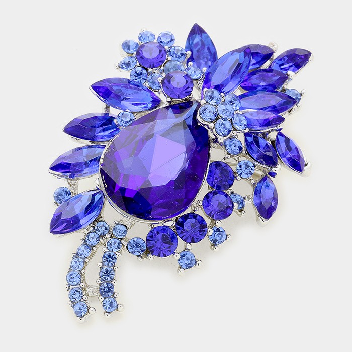 Glass Crystal Teardrop Flower Pin Brooch / Pendant