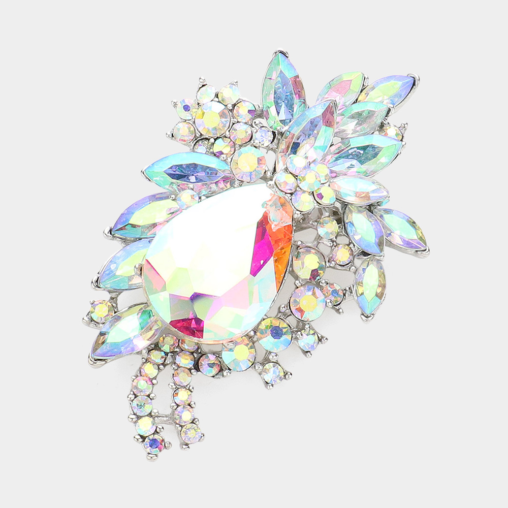 Glass Crystal Teardrop Flower Pin Brooch / Pendant