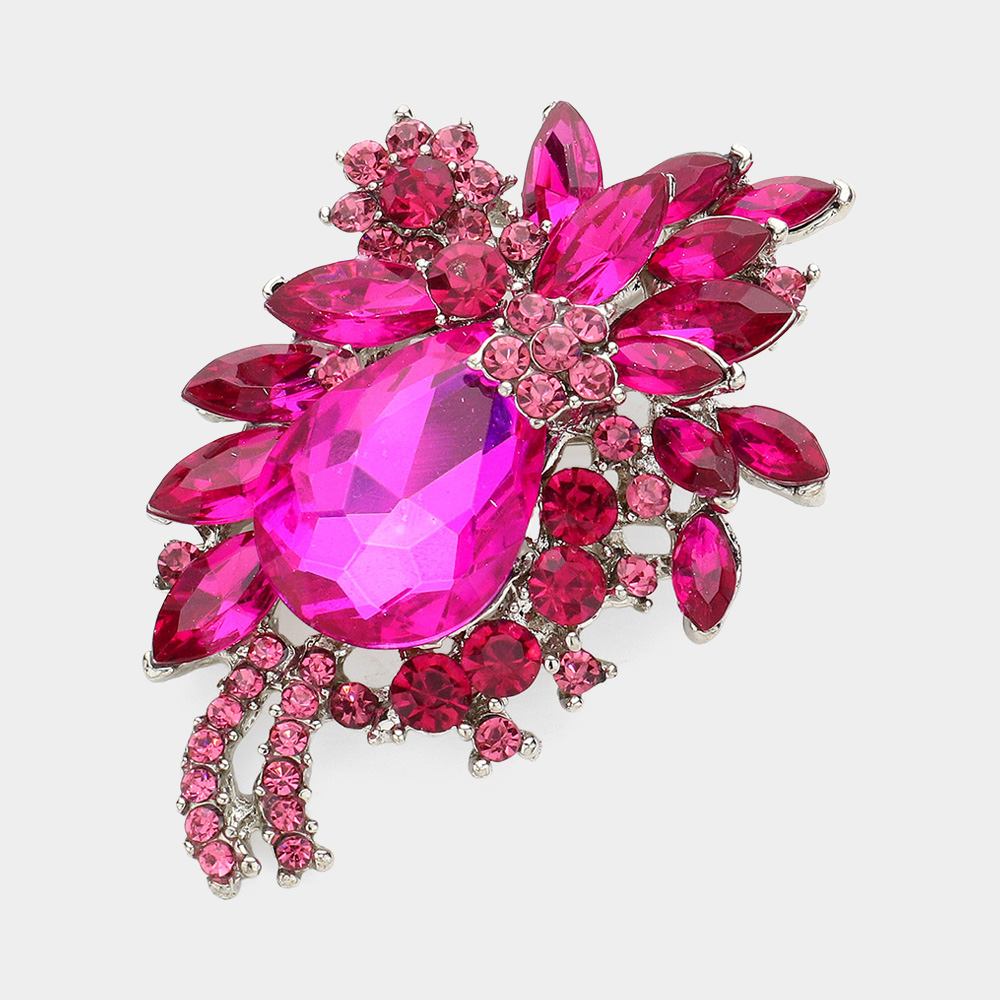 Glass Crystal Teardrop Flower Pin Brooch Pendant