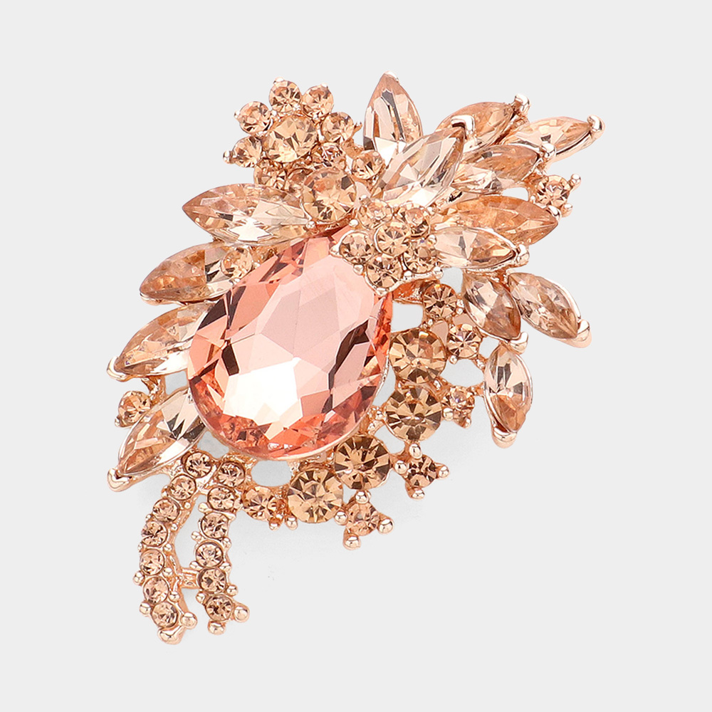 Glass Crystal Teardrop Flower Pin Brooch Pendant