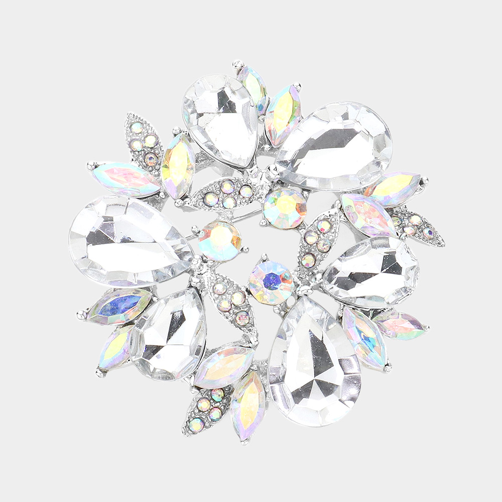 Glass Crystal Teardrop Wreath Pin Brooch