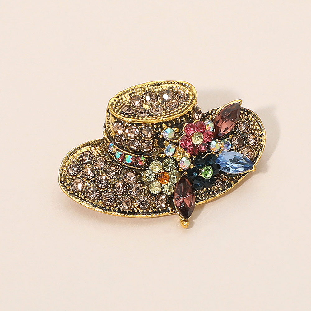• Charming dual-use brooch and pendant designed in a hat silhouette with sparkling crystals and colorful floral accents. A versatile accessory that adds playful elegance to outfits, perfect for collectors, special occasions, or as a thoughtful gift for jewelry lovers.
