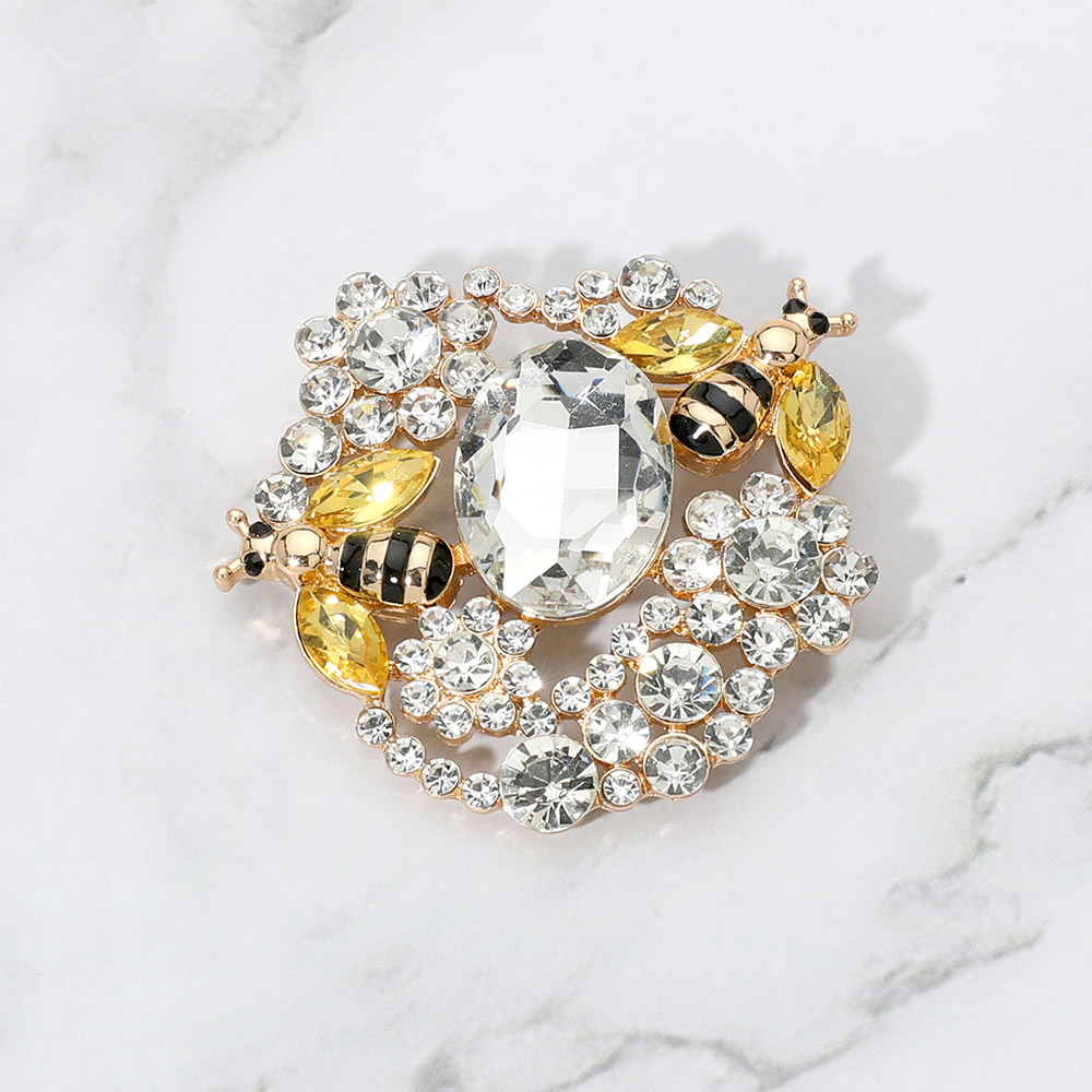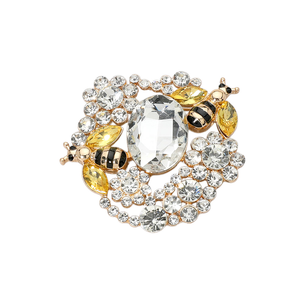 Details • Size : 2" X 2" • Pin Brooch • Eye-catching floral bee brooch featuring vivid crystal accents and playful details. A bold statement accessory perfect for jackets, dresses, scarves, or bags, adding charm and elegance to everyday and special occasion outfits. • Lead and Nickel Compliant