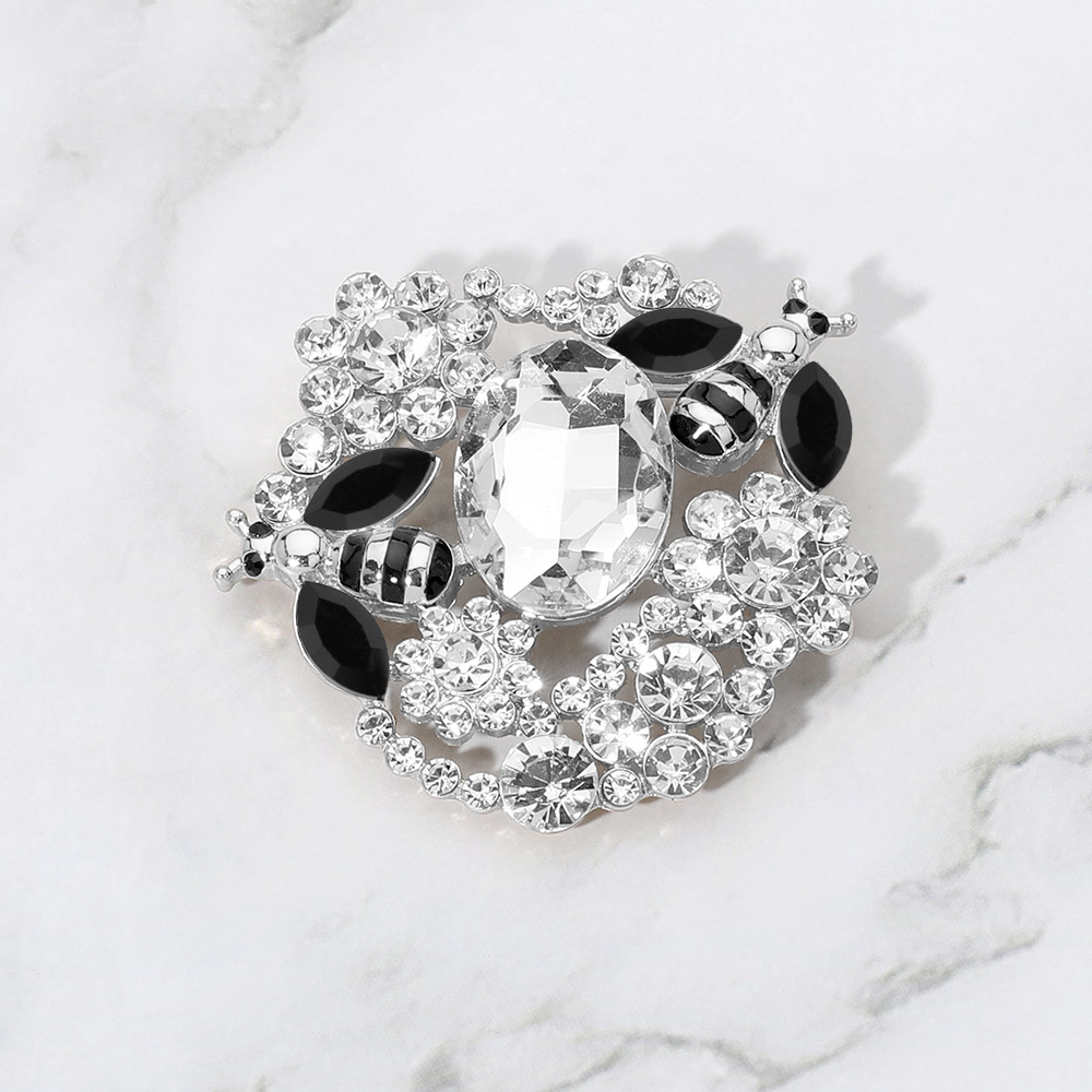 Details • Size : 2" X 2" • Pin Brooch • Eye-catching floral bee brooch featuring vivid crystal accents and playful details. A bold statement accessory perfect for jackets, dresses, scarves, or bags, adding charm and elegance to everyday and special occasion outfits. • Lead and Nickel Compliant