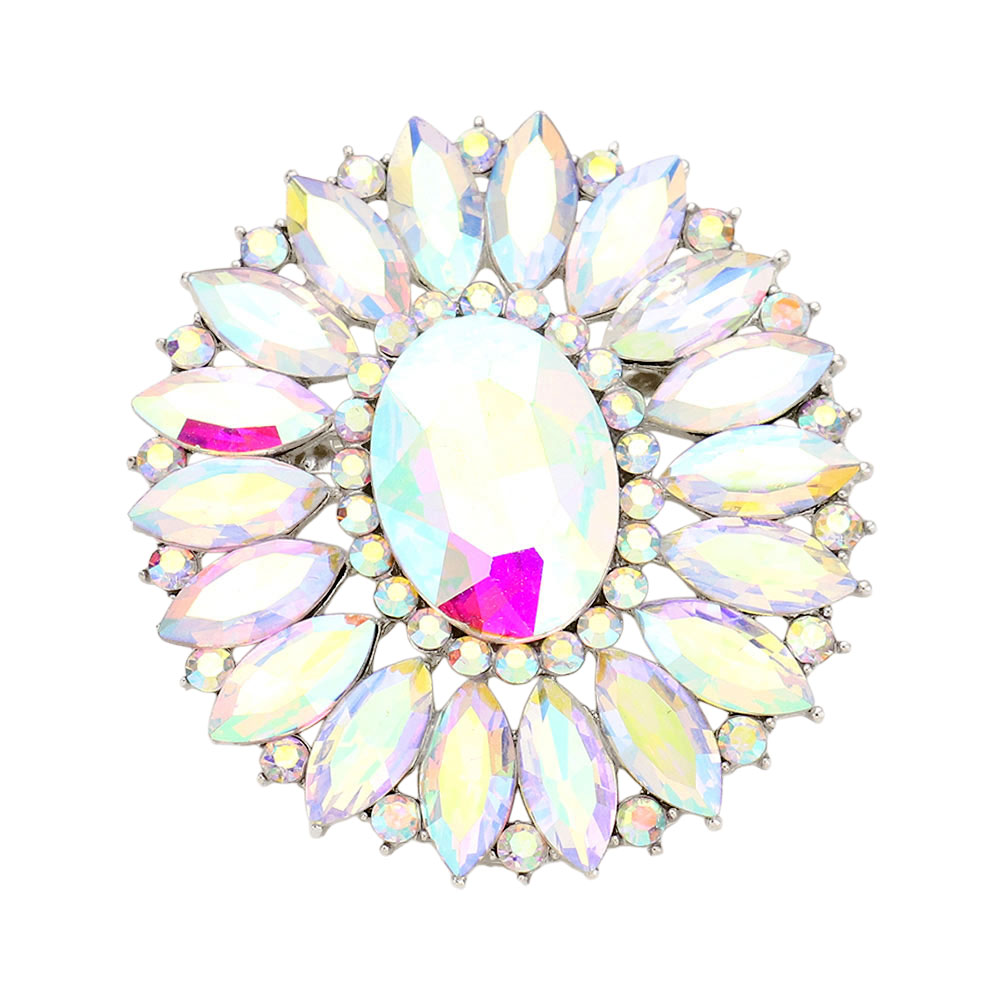 • Striking oval brooch featuring a radiant crystal design that adds a vibrant and glamorous touch to jackets, scarves, or dresses. A standout accessory perfect for making a stylish statement at any occasion.