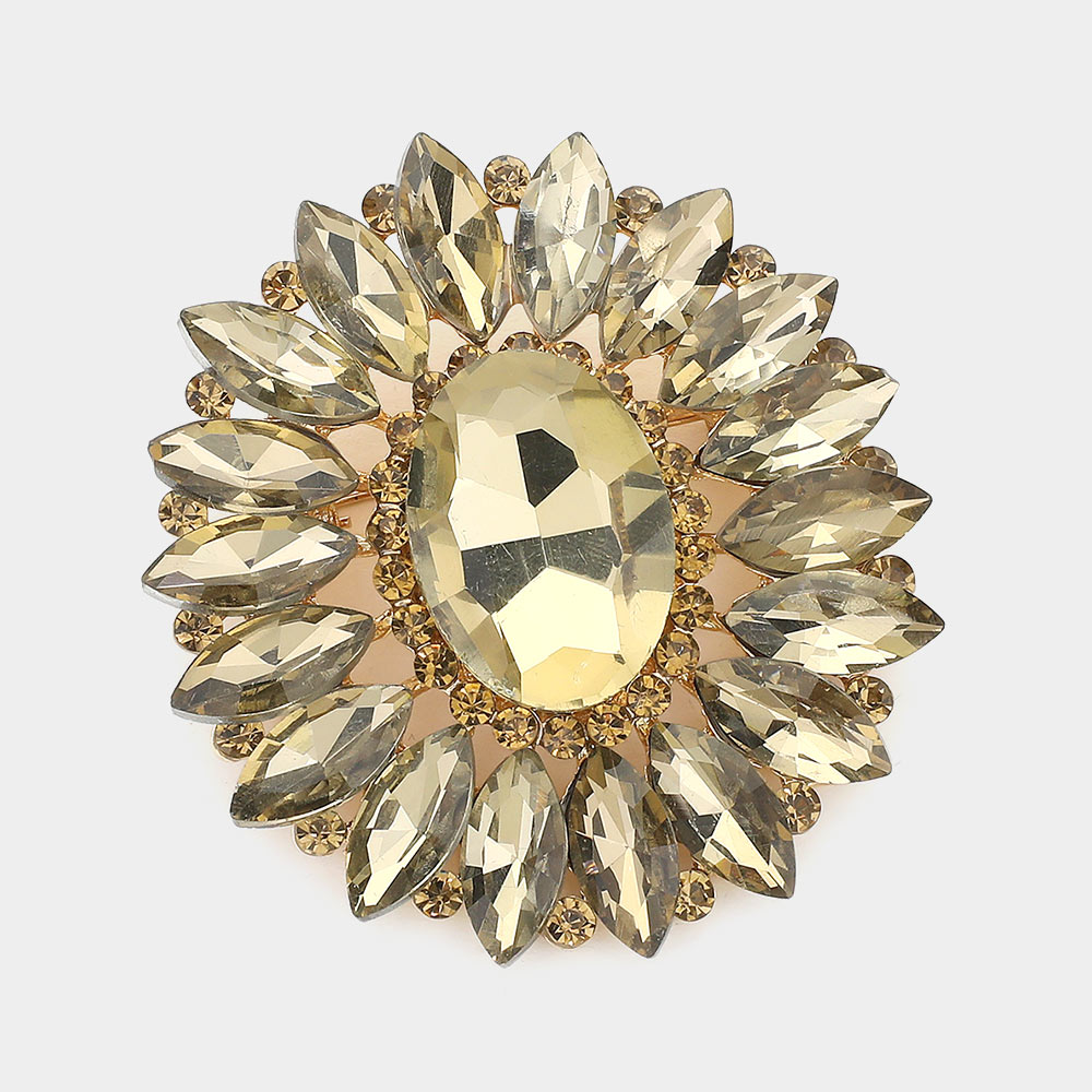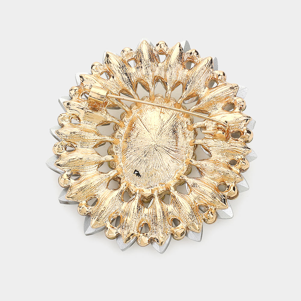 Round Glass Stone Pointed Stone Paved Flower Pin Brooch