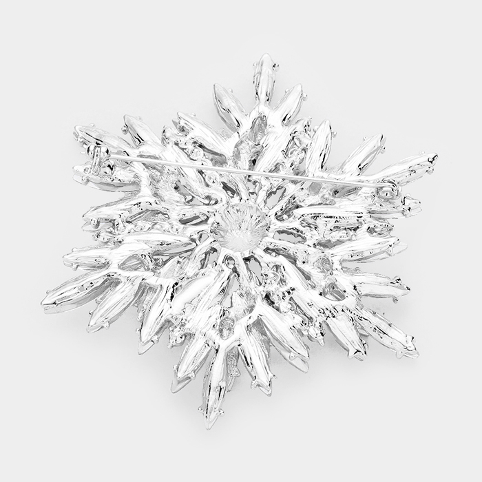Round Stone Centered Rhinestone Paved Flower Stretch Ring
