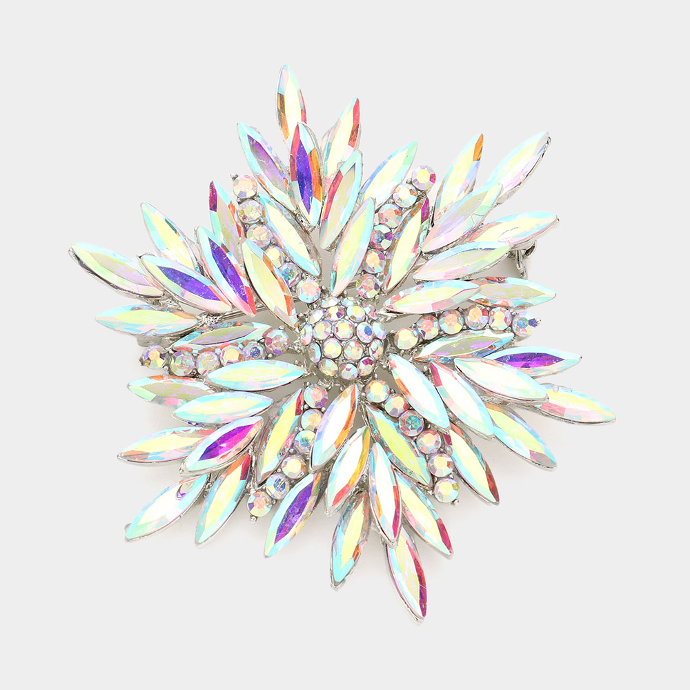 Marquise Stone Cluster Flower Pin Brooch