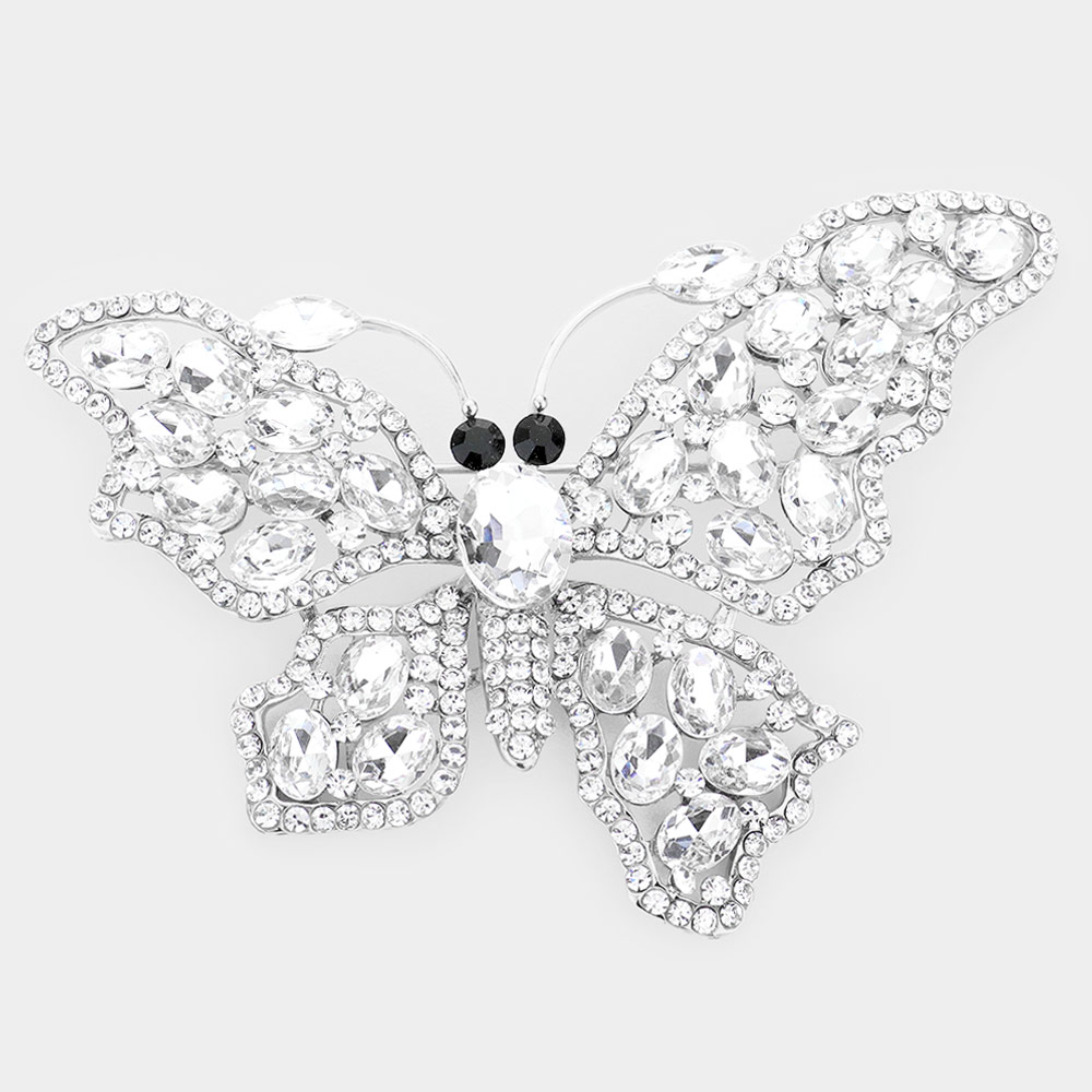 White Gold Dipped CZ Embellished Butterfly Pendant Necklace