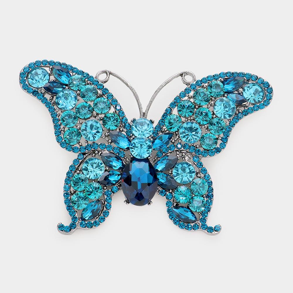 Marquise Stone Cluster Butterfly Drop Accent Rhinestone Paved Necklace
