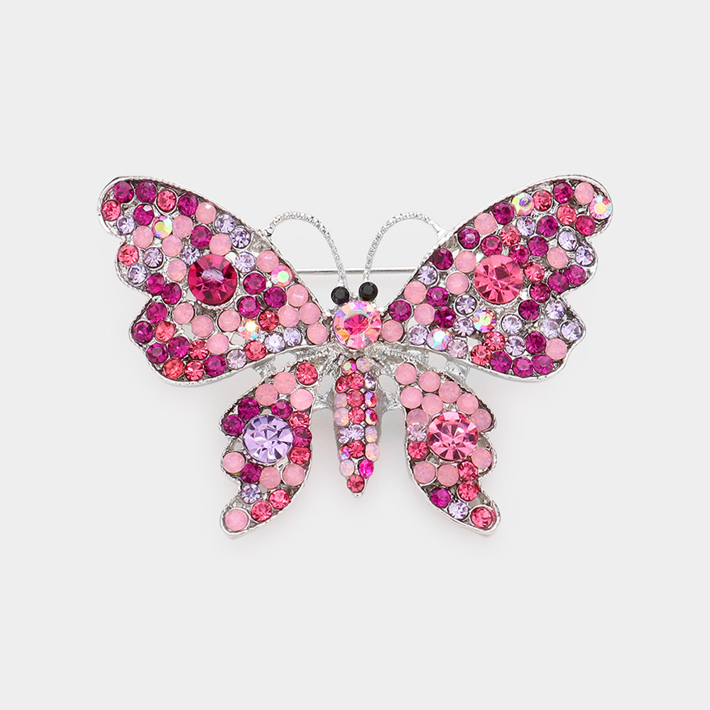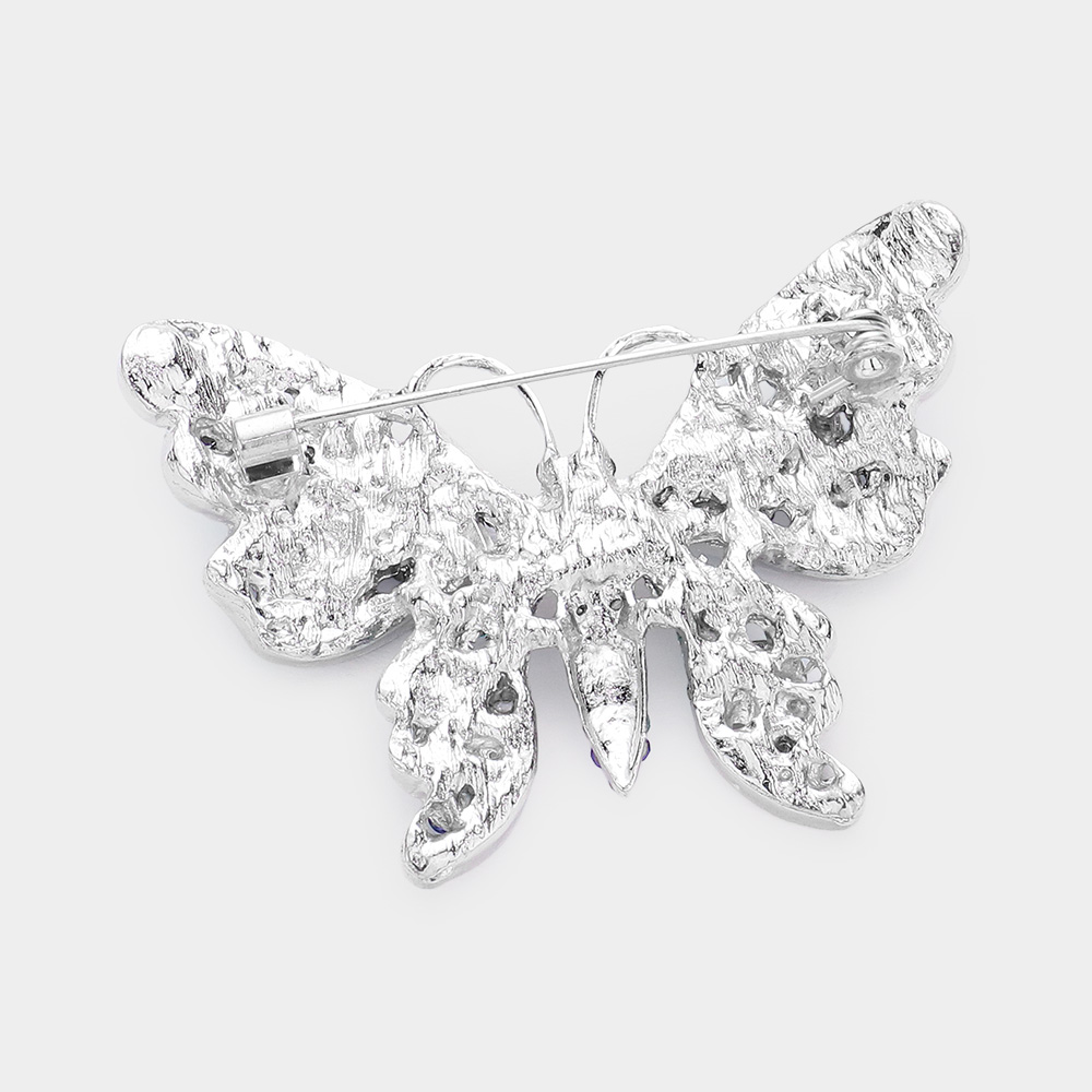 Marquise Stone Cluster Butterfly Drop Accent Rhinestone Paved Necklace