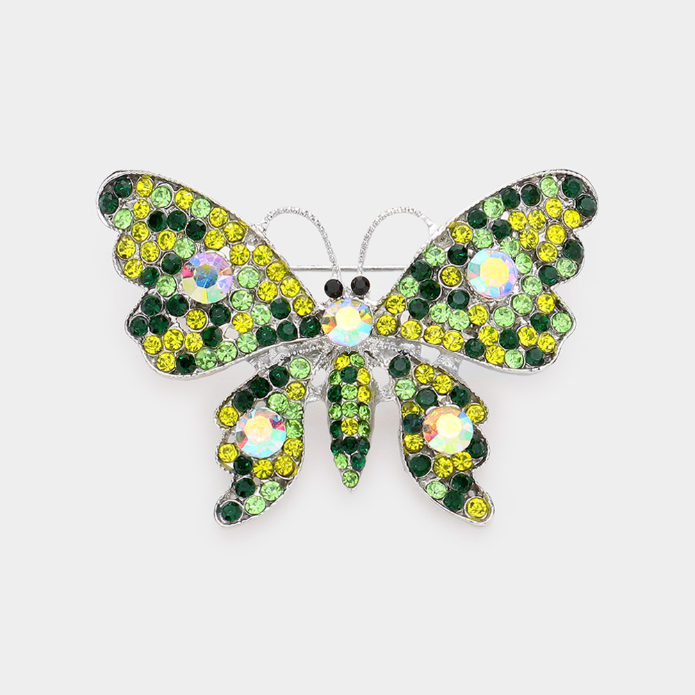 Multi Stone Butterfly Pin Brooch