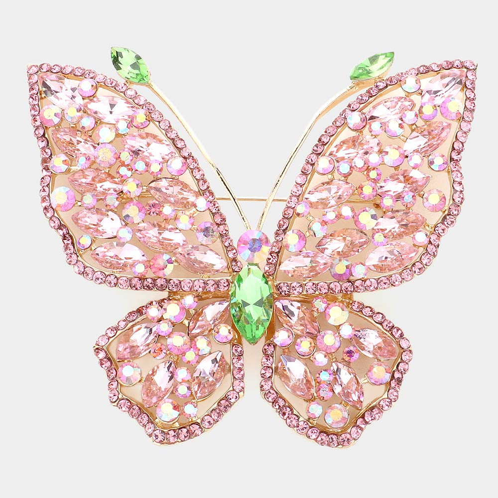 Multi Stone Embellished Butterfly Pin Brooch