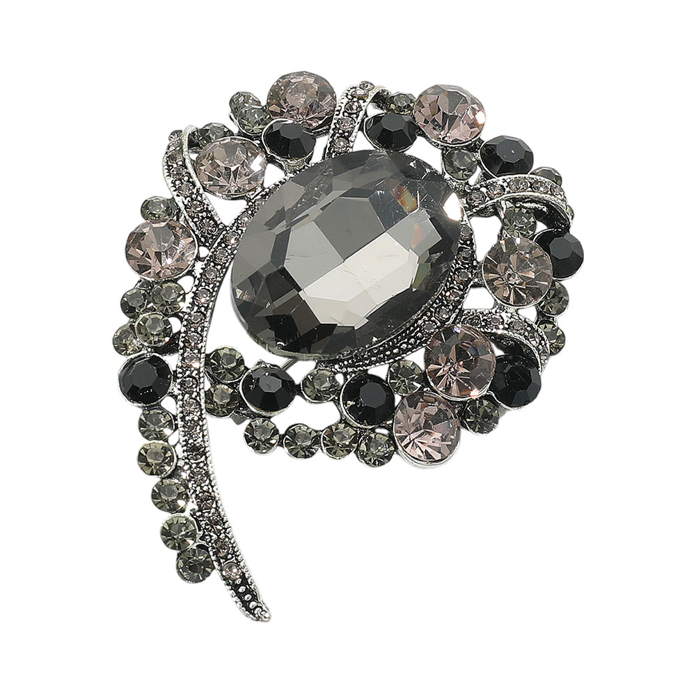 Oval Stone Center Flower Pin Brooch