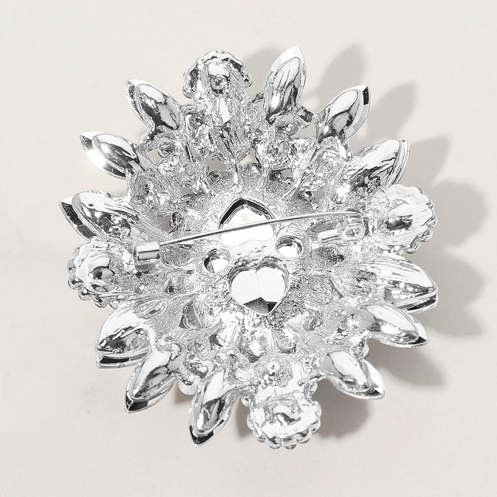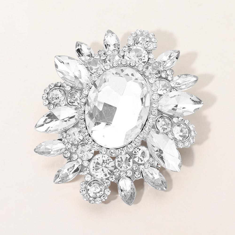 • Make an unforgettable statement with this radiant floral brooch featuring brilliant sparkling stones arranged around a large center gem. Its eye-catching shimmer adds sophistication to jackets, scarves, bags, and dresses, making it the perfect accessory for special occasions or elegant everyday styling.