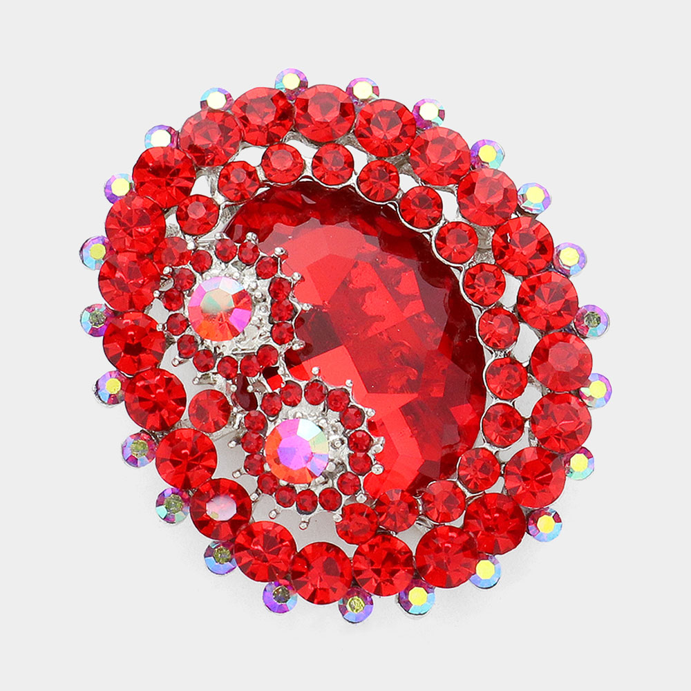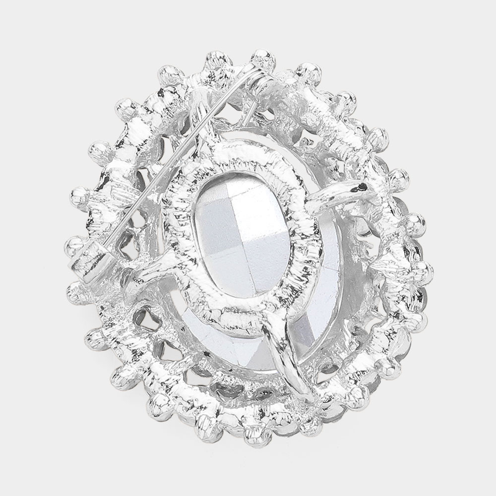 Oval Glass Crystal Double Flower Pin Brooch