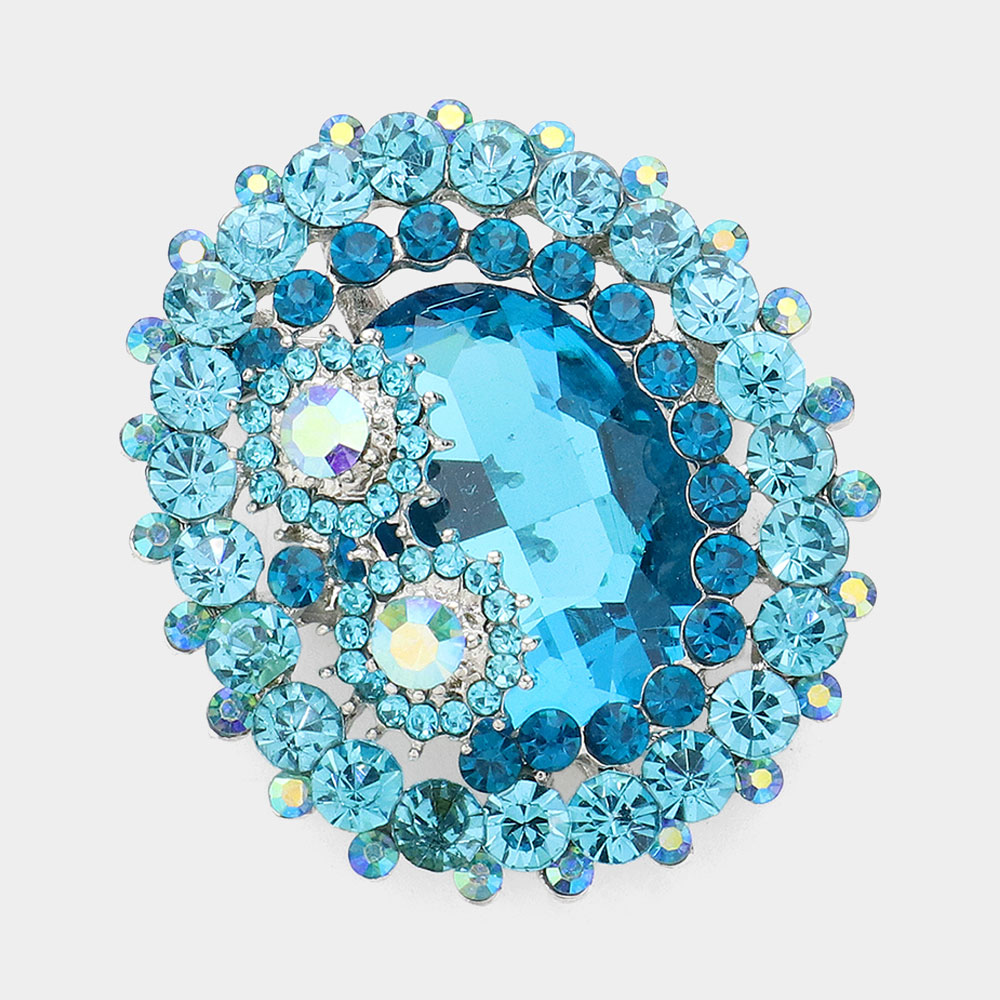 Marquise Floral Oval Crystal Cluster Stretch Evening Bracelet