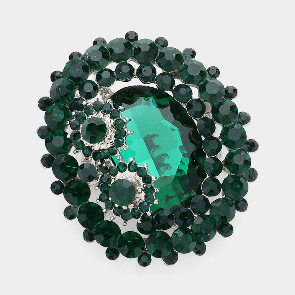 Oval Glass Crystal Double Flower Pin Brooch