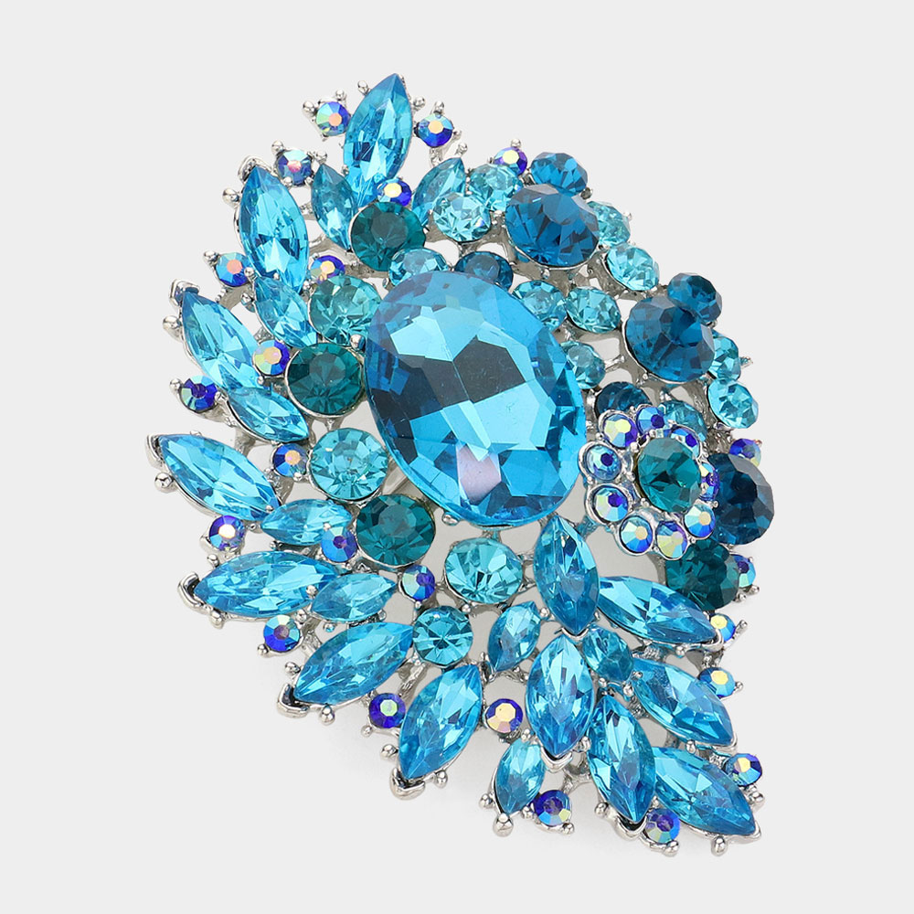 Oval Glass Stone Accented Marquise Stone Cluster Pin Brooch