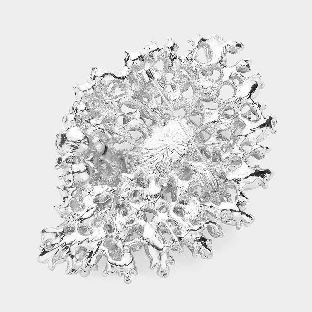 Oval Crystal Accented Flower Pin Brooch