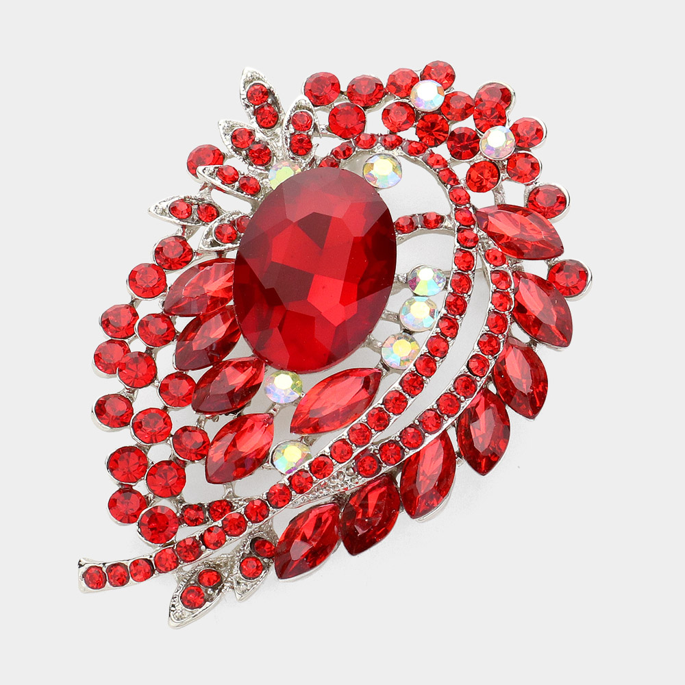 Details • Size : 2.5" X 3.75" • Pin Brooch • Add bold elegance with this swirl design brooch featuring radiant red gemstones and a striking oval centerpiece. Perfect for formal wear, weddings, or evening occasions, it enhances jackets, dresses, and scarves with a captivating sparkle and timeless sophistication for a standout accessory. • Lead and Nickel Compliant