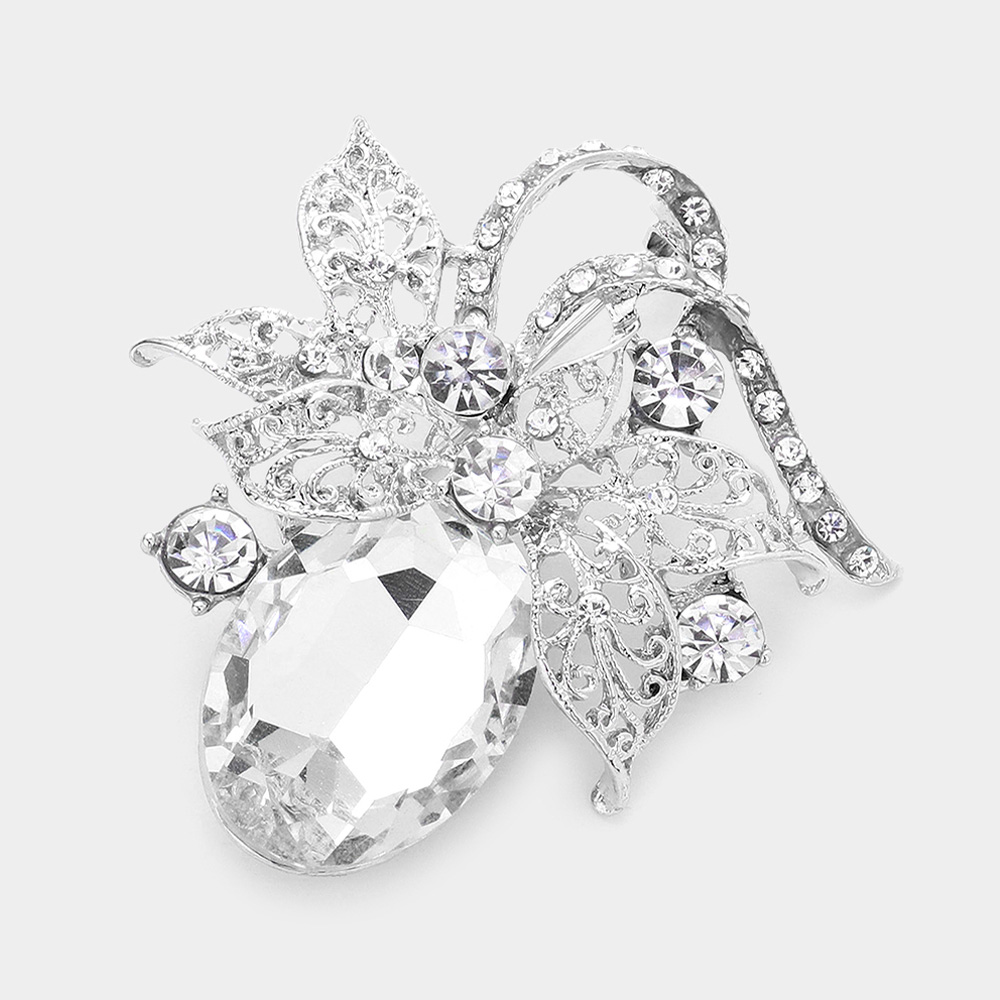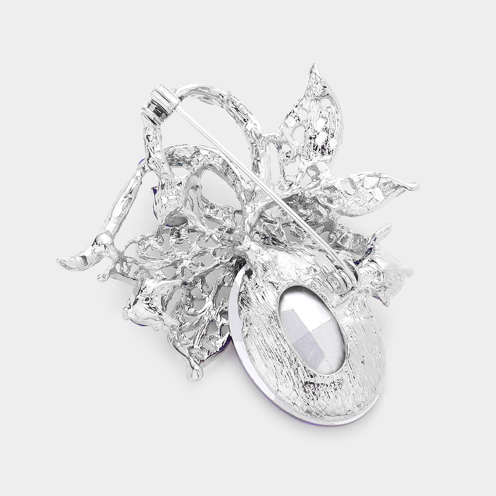 Oval Stone Accented Leaf Detailed Bouquet Pin Brooch