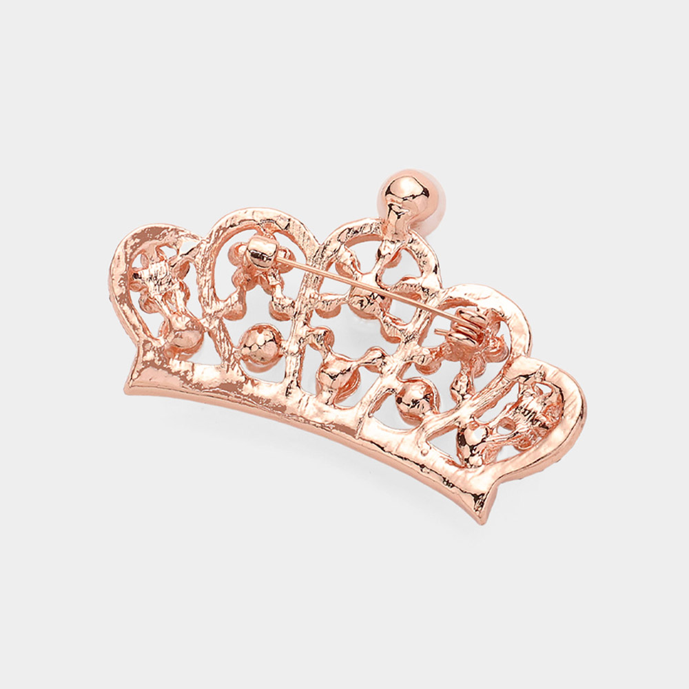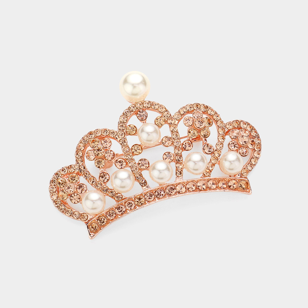 Pearl Pointed Stone Paved Crown Pin Brooch